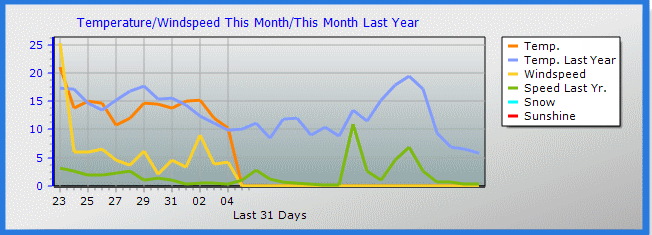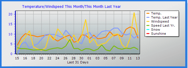 Record low wind chill temperature: -15.1 oC at: 08:24 on: 27 Enero 2005